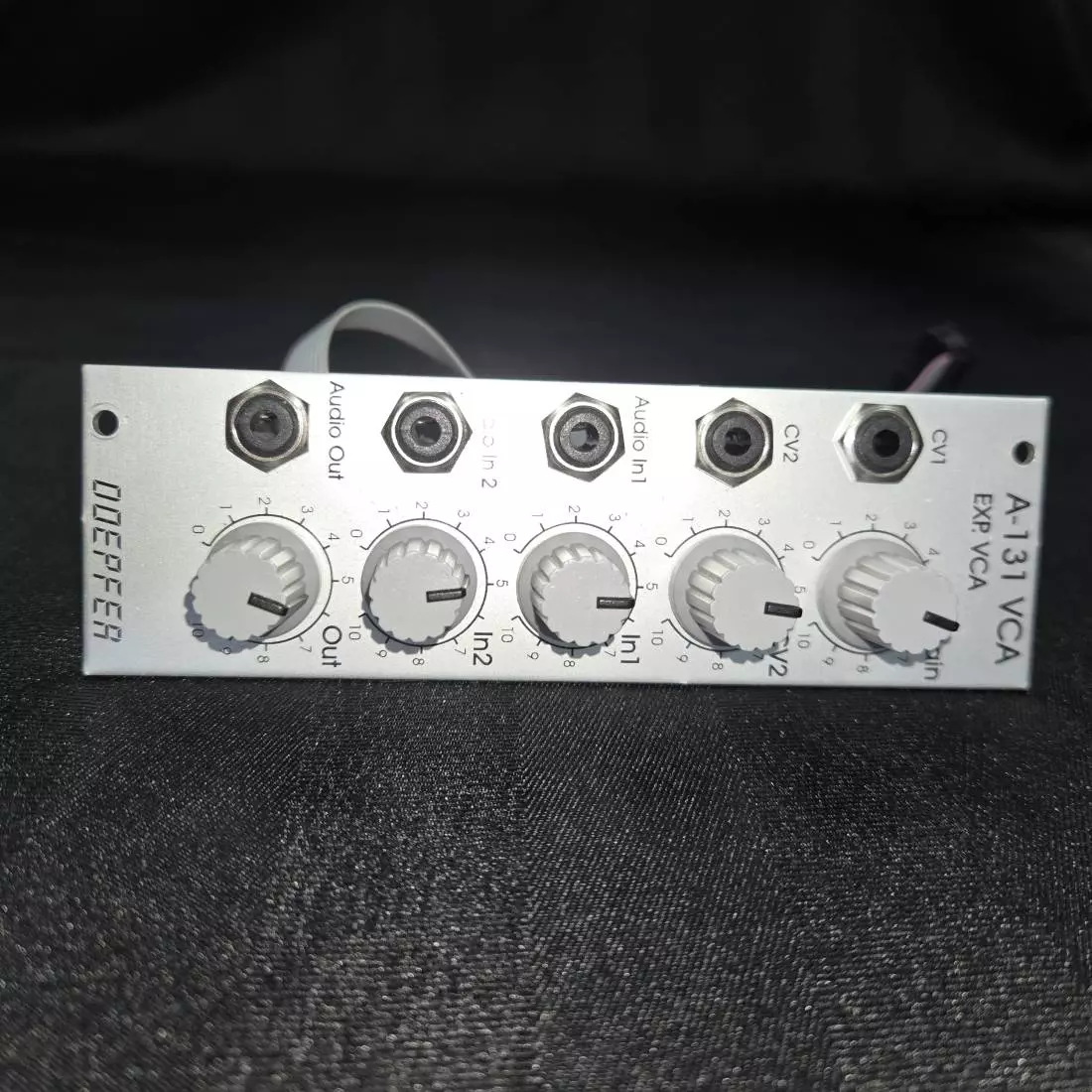 The A-131 module is a single channel exponential VCA intended to control the levels of audio signals. The module features manual gain control and two signal inputs, meaning it can also function as a utility mixer.