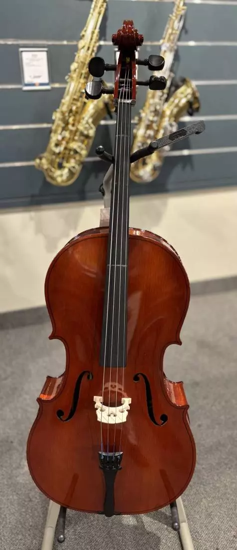 ADDITIONAL INFO : Student cello, basic colour reddish/brown, European-made