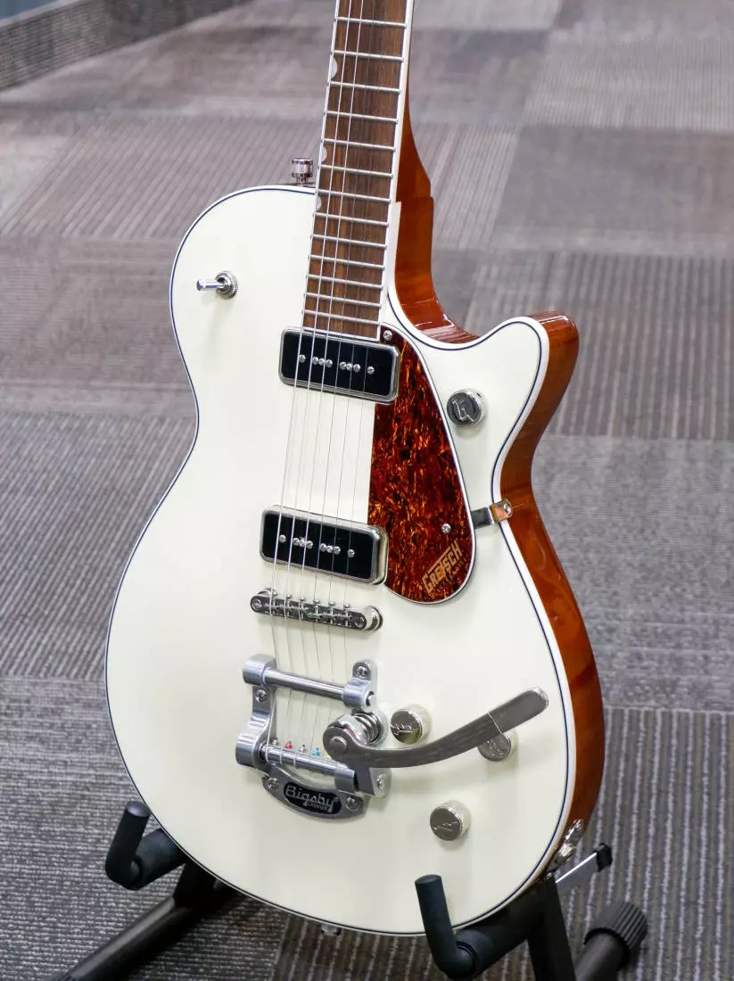 No nonsense, Electromatic® Jet™ models are your next-step Gretsch - bold, dynamic and articulate, and crafted with essential Gretsch sound, style and playability. The all-new G5210T-P90 Electromatic Jet Two 90 Single-Cut with Bigsby® captures essential Jet power and fidelity at an incredible price.