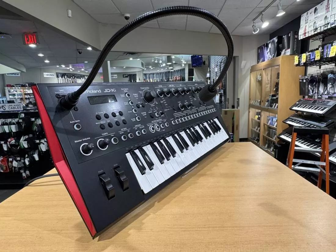 Tiny, mighty, and affordable, the JD-Xi puts a true analog synth engine, Roland's famous SuperNATURAL synth sounds, and many other creative tools under one hood. Equipped with 37 mini keys, this compact instrument delivers fat, warm analog bass and lead tones with ample controls for hands-on tweaking, plus polyphonic PCM essentials like pads, strings, brass, and more. Create impressive loops in a flash with the pattern sequencer and built-in drum kits, and explore expressive vocal textures with the gooseneck mic, Vocoder, and AutoPitch. Small in size and large in versatility, the JD-Xi is all about big sounds and big fun!