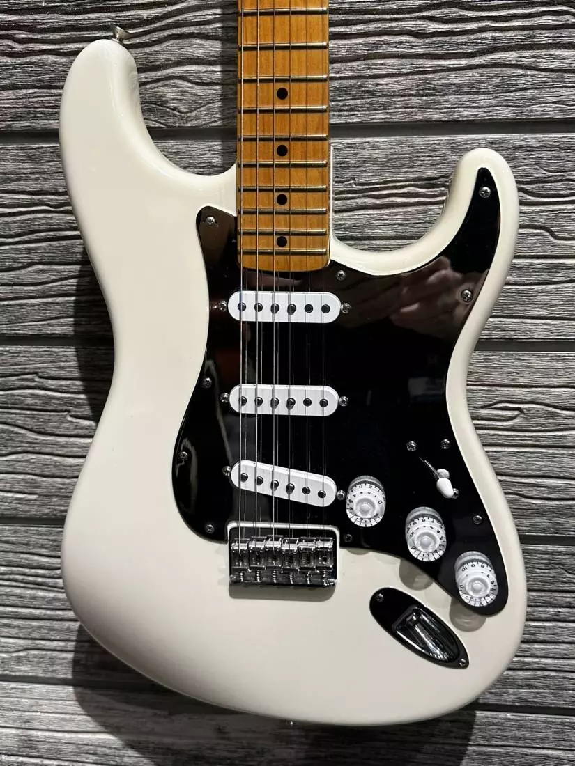 The Hitmaker features a 1960 alder body that is uniquely smaller and more contoured than a typical vintage Strat. The beautiful Olympic White lacquer matches the finish Nile sprayed on the guitar himself just after he acquired it in the early days of Chic. The custom '59-profile one-piece maple neck has a 9.5" radius fingerboard, medium jumbo frets and a satin finish. A "Nile Rodgers & Chic" logo adorns the back of the headstock and a custom Hitmaker logo is stamped into the neck plate.
