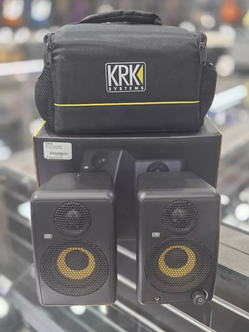 The KRK GoAux 3 portable nearfield monitors are designed to provide great sound anywhere you go. The perfect monitors for traveling musicians and engineers, they deliver renowned KRK sound quality in a mobile-friendly size. Since they're made to go wherever you do, the GoAux 3 monitors come with a convenient nylon carrying bag that holds both monitors as well as the included monitor stands and any extra cables you want to take along with you. The stands are adjustable for the optimum monitoring positioning and angle.