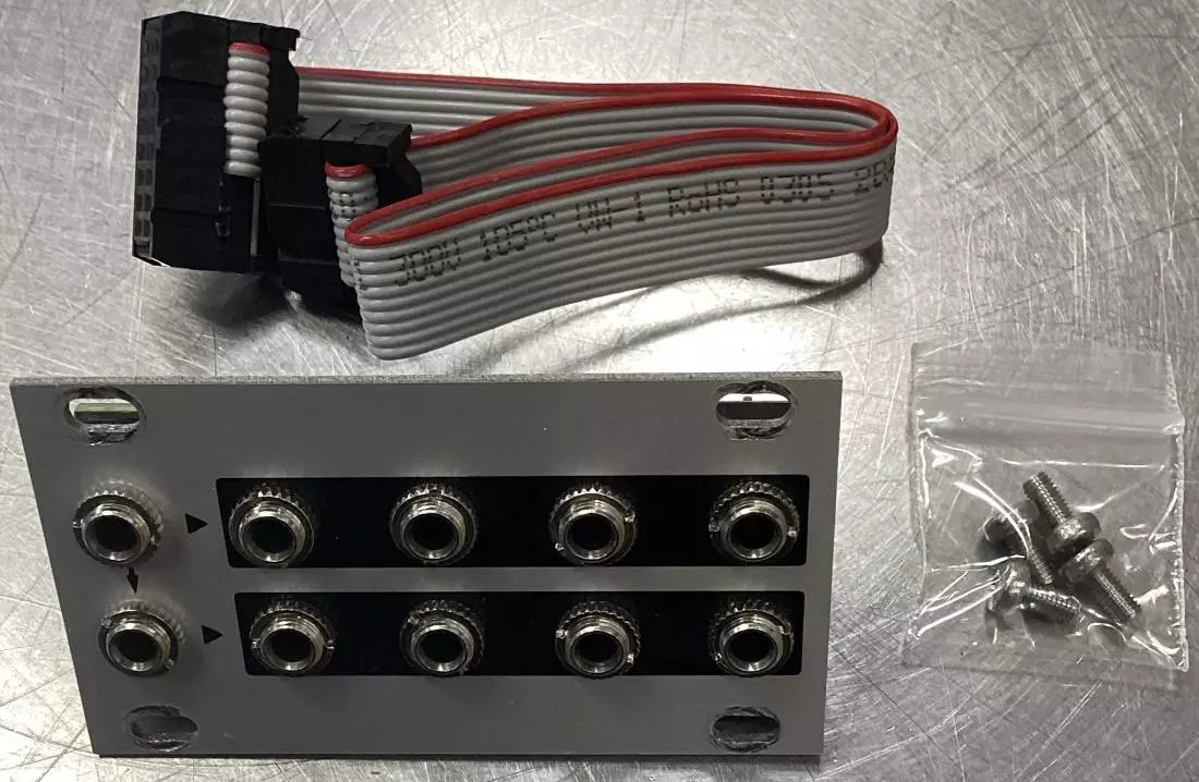Dual 1 x 4 buffered mult (one audio or cv signal in with multiple buffered outputs).