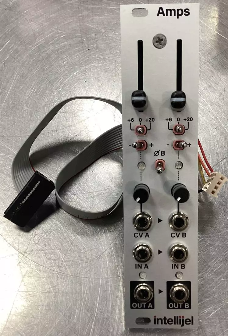 Amps contains two precision linear VCAs that have been carefully designed to offer a wealth of flexibility and additional functionality. The front panel controls and signal normals allow these two VCAs to also be configured to function as: line level boosters, crossfaders, ring modulators, mixers, and much more. They can also be chained together by way of an included cable to form larger, more complex systems.