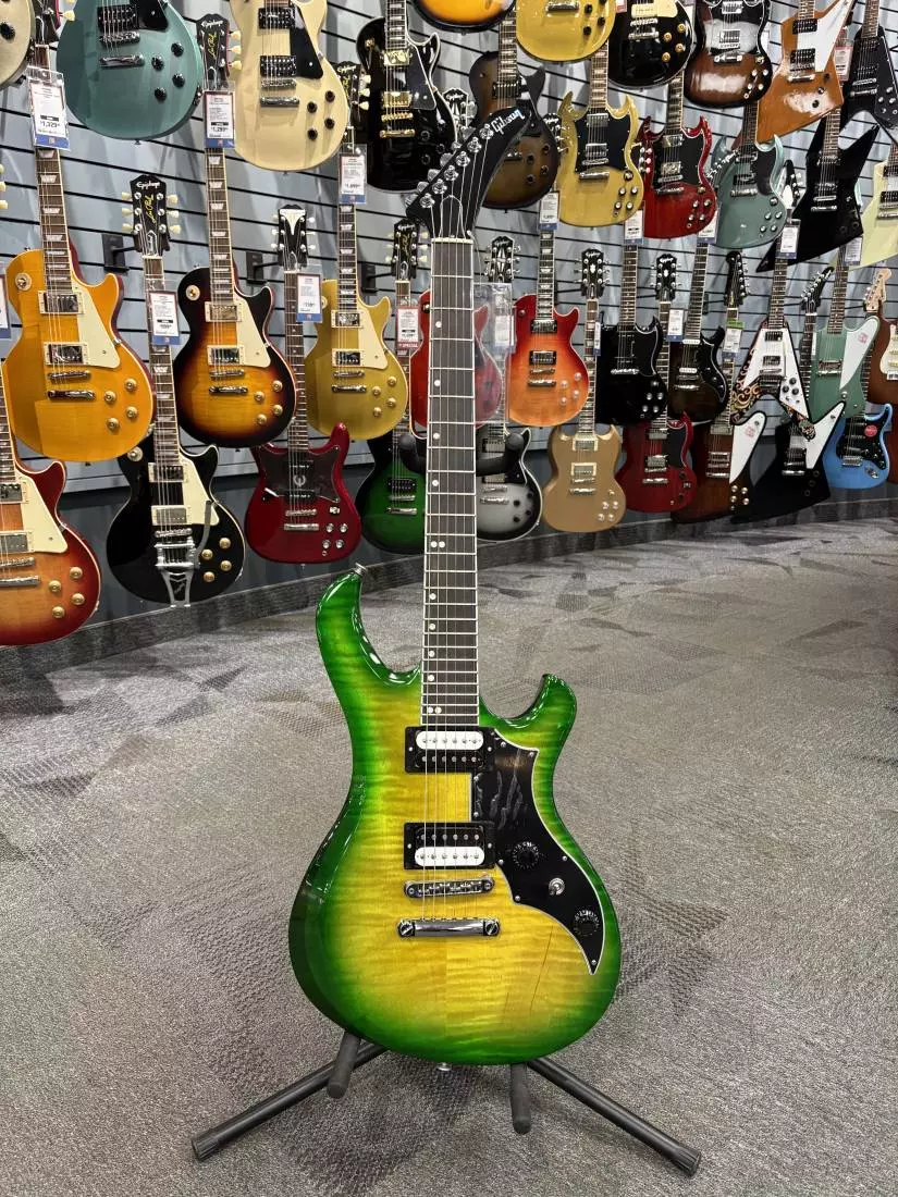The new Gibson Victory Figured Top was created in response to player requests for the return of this 80s-era cult favourite. Crafted for limitless self-expression, it carries the DNA of the original versions with enhanced features such as refined body contours, improved weight and balance, and an Explorer headstock. The Victory Figured Top has a 25.5" scale length, and the mahogany neck has an ebony fingerboard with a compound radius for enhanced playability, a SlimTaper profile, and 24 medium jumbo frets. The mahogany body has an AA figured maple cap, a Tune-O-Matic bridge and Stop Bar tailpiece and a gloss nitrocellulose lacquer finish.