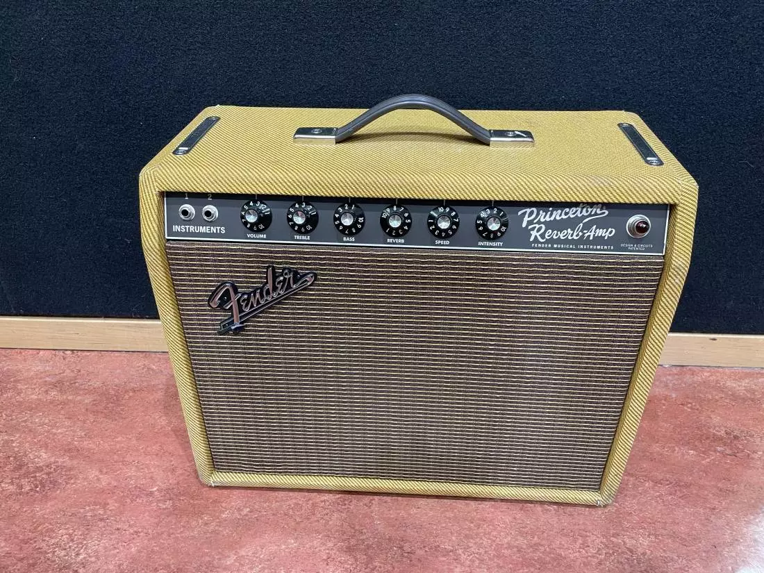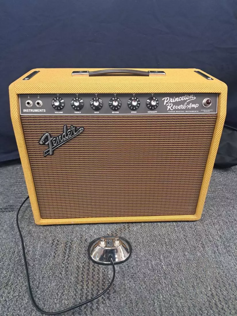 A Long & McQuade exclusive, this Fender FSR special run 65 Princeton has tweed covering and special Eminence 12" Cannabis Rex speaker. All tube 12W, single channel with reverb and tremolo.
