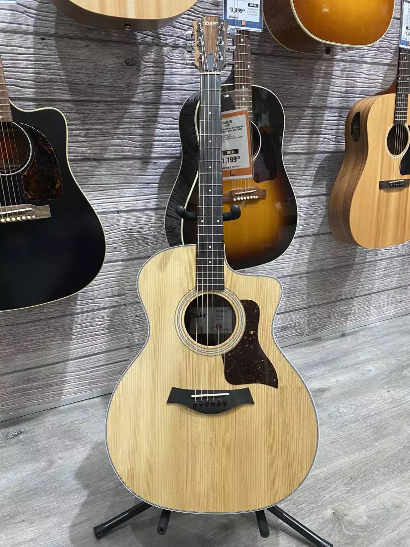 Taylor's 200 Series has been a hit with all types of guitar players, from the new learner to the experienced pro. The player-friendly Taylor Neck design makes for relaxed fretting, and the Venetian cutaway provides quick access to the guitar's highest register. For players who like to plug in, the onboard ES2 pickup delivers clean, authentic acoustic tone for amplified situations, making it easy to play with other musicians or at solo performances. This Grand Auditorium acoustic-electric guitar comes with a padded gig bag for protection during transport.