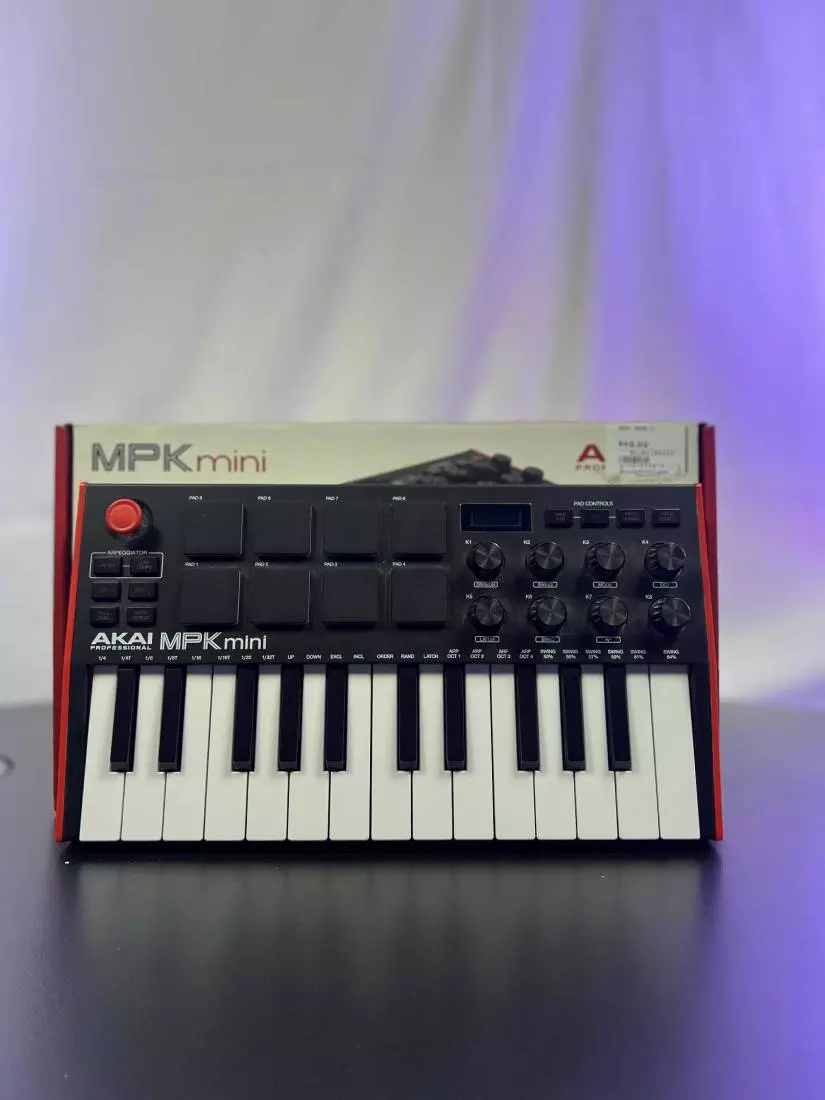 Go mobile without losing control. The new MPK mini is an ultra-compact keyboard controller designed for the traveling musician and the desktop producer. With an array of hardware controls, MPK mini lets you record, compose, and perform with virtual instruments, effect plugins, and DAWs whenever inspiration strikes. It features 25 velocity-sensitive synth-action keys, a 4-way thumbstick for dynamic pitch and modulation manipulation, 8 backlit velocity-sensitive MPC-style pads, and 8 assignable Q-Link knobs. Plus, two banks expand the number of MPC-style pads to 16 for extended creative capabilities.