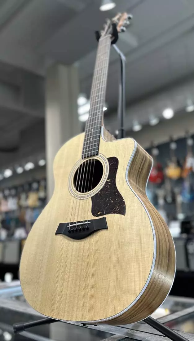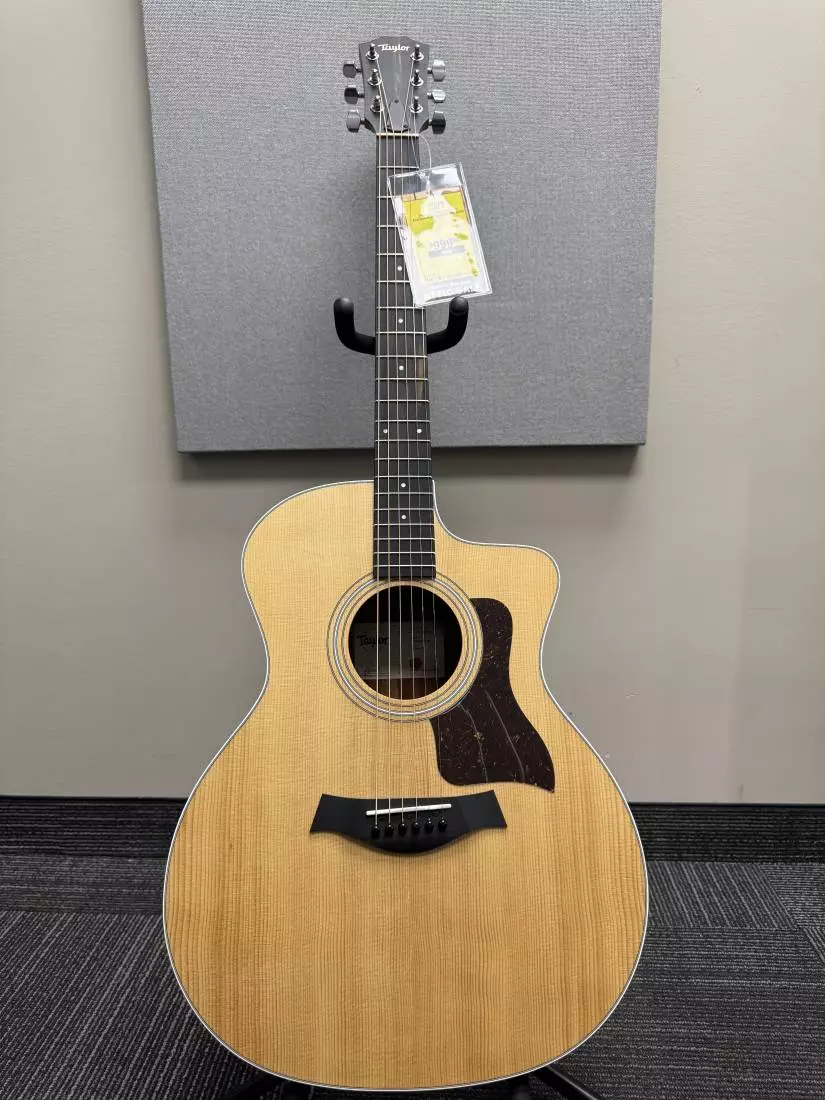 Grand Auditorium guitars from the 200 Series have always been a hit with players of all skill levels and styles, and the latest edition of the 214ce-K brings more of the crisp acoustic tone and smooth feel that musicians have come to expect from a Taylor. Tonal balance makes this guitar an all purpose musical tool, versatile enough to pump out powerful cowboy chords and articulate enough to perform beautifully in more subtle styles such as flatpicking or fingerpicking. Appointments include crisp white binding, a three-ring rosette, and a Venetian cutaway for easy access to the higher notes on the fretboard. The guitar ships with ES2 electronics for organic, clean tone in amplified situations, and comes with a sturdy padded gig bag.