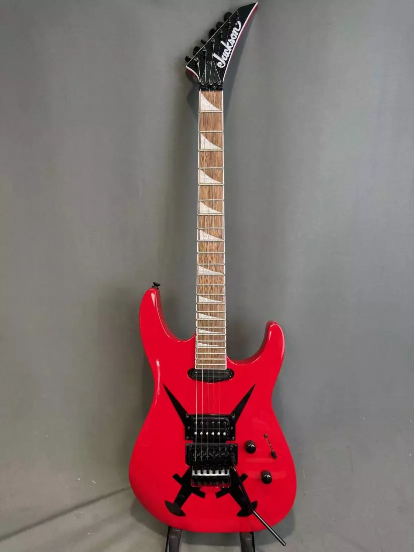 A Jackson high-output humbucking bridge pickup and rail-style neck pickup power this metal beast with an expansive voice loaded with crunchy, full-bodied tone ideal for brazen lead work or assertive rhythms runs. Tone is fully customizable with three-way pickup blade switching and single volume and tone controls, while a Floyd Rose® Special double-locking tremolo bridge system provides superior string stability and dynamic tremolo action.