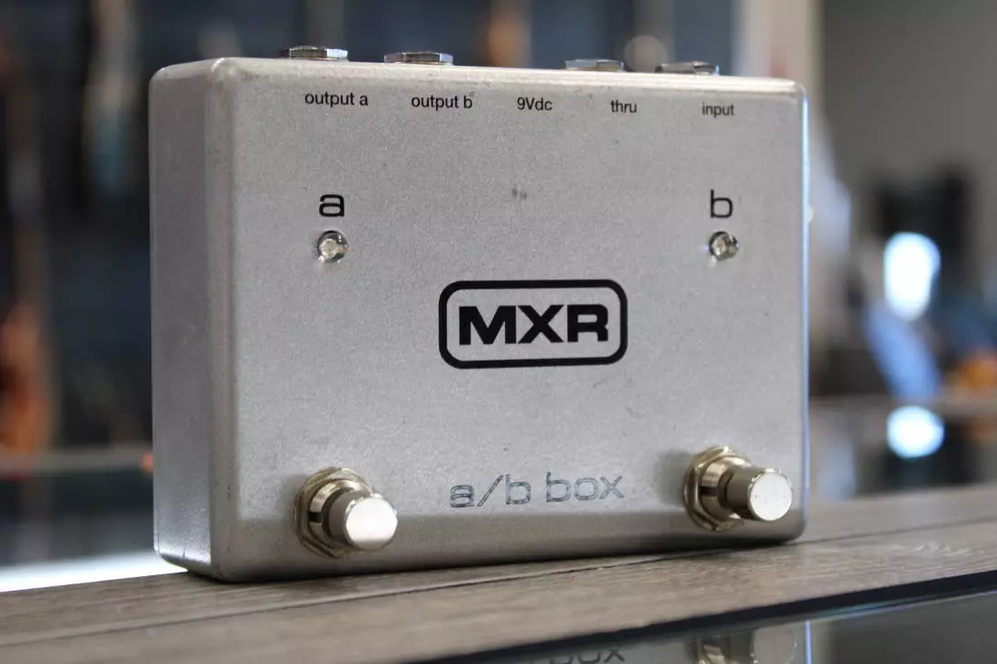 The A/B Box allows you to route your instrument's signal to two separate output amp paths, with a Thru jack for use with a tuner or other device meant to receive a constant signal.
