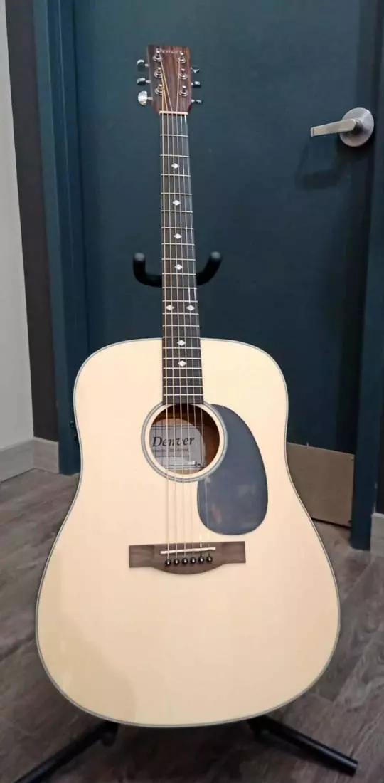 Denver's version of the legendary Dreadnought guitar shape is built for the practicing and performing musician. This full-size acoustic Dreadnought provides a powerful spectrum of tone by way of high quality solid Spruce top, Techwood fingerboard, Okoume neck, Mahogany back and sides. The Dreadnought is known for its playability and for defining the sound of roots music.