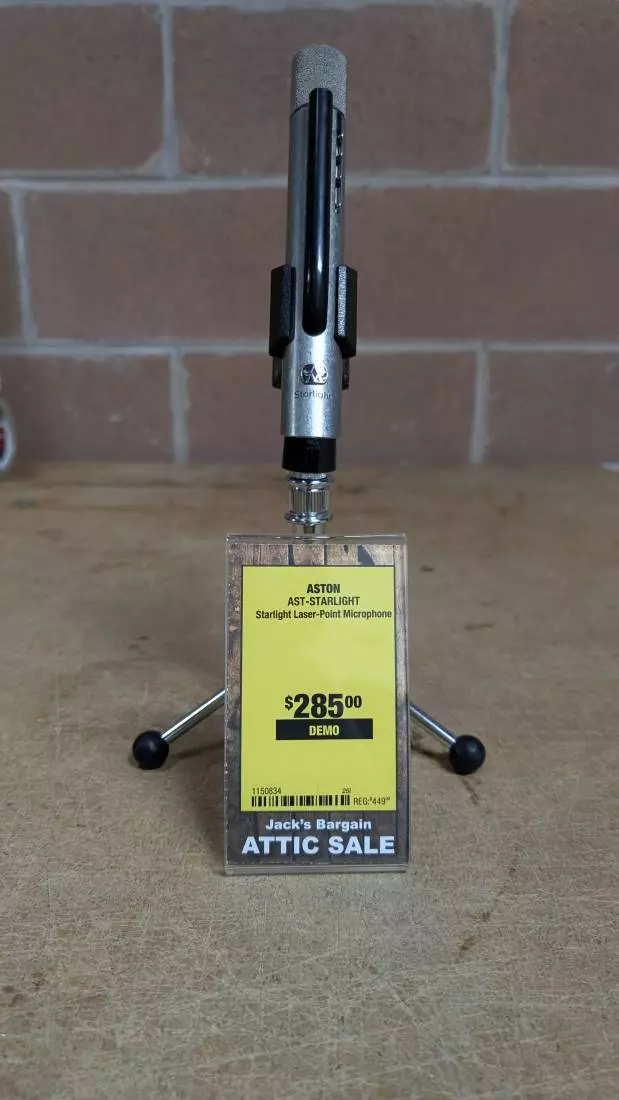 Aston's Starlight is the first ever laser targeting pencil microphone, allowing for recall of mic position in studio use, and incredibly quick and easy set up in live applications. This truly astonishing microphone also showcases Aston's unique variable voice switching for sound contouring, a nearly indestructible build quality, their signature sintered head, and Aston's, now famous, tumbled 100% stainless steel chassis.