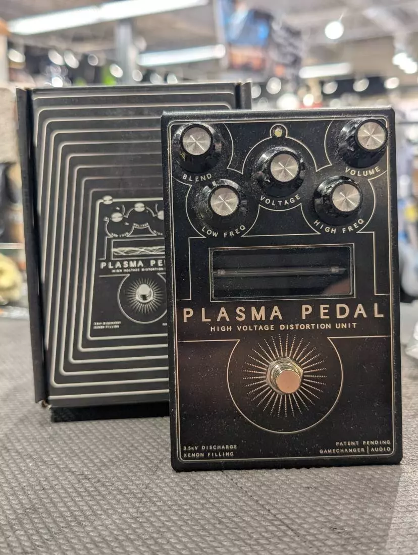 The PLASMA PEDAL is a revolutionary approach within the realm of overdrive and distortion, as it is a new and previously unexplored method of achieving signal clipping. Instead of using LED circuits, transistors or vacuum tubes to produce overdrive, the PLASMA PEDAL transforms your instrument's live signal into a series of continuous high-voltage discharges within a xenon-filled tube. In essence, you are playing a bolt of electricity, and the electrical discharges produced by your instrument are instantly converted back into an analog audio signal, producing a quick, responsive, and extremely heavy distortion with TONS of unique character!
