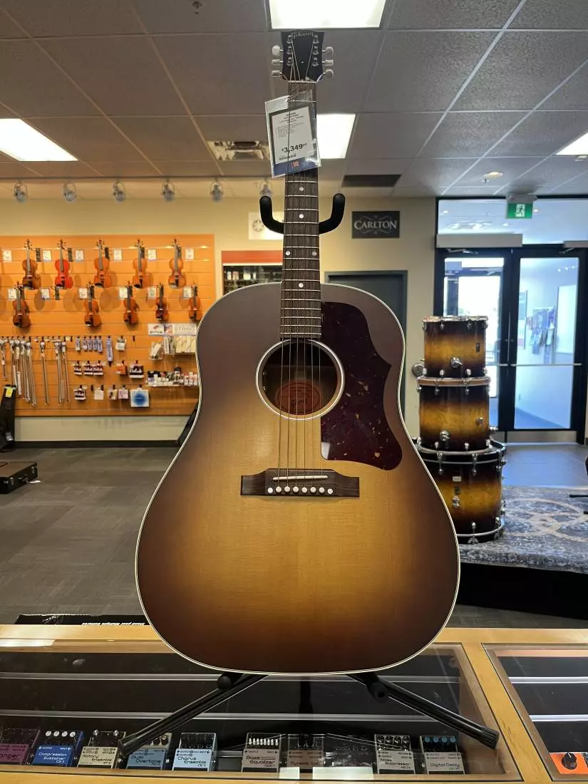 The J-45 is Gibson's best-selling acoustic of all time. Nicknamed "The Workhorse" and first introduced in 1942, this iconic acoustic has become the cornerstone of its round-shoulder, dreadnought line. World-renowned for its full, balanced expression, warm bass, and excellent projection, the J-45 has been refined to carry this legacy to new heights. The Gibson J-45 Faded 50s delivers full-spectrum sound with incredible dynamic range; warm mids; and tight, punchy bass. Now available with a faded satin nitrocellulose lacquer finish that accentuates the guitar's vintage vibe, and equipped with a modern LR Baggs pickup and electronics package for studio and stage use. A hardshell case is also included.