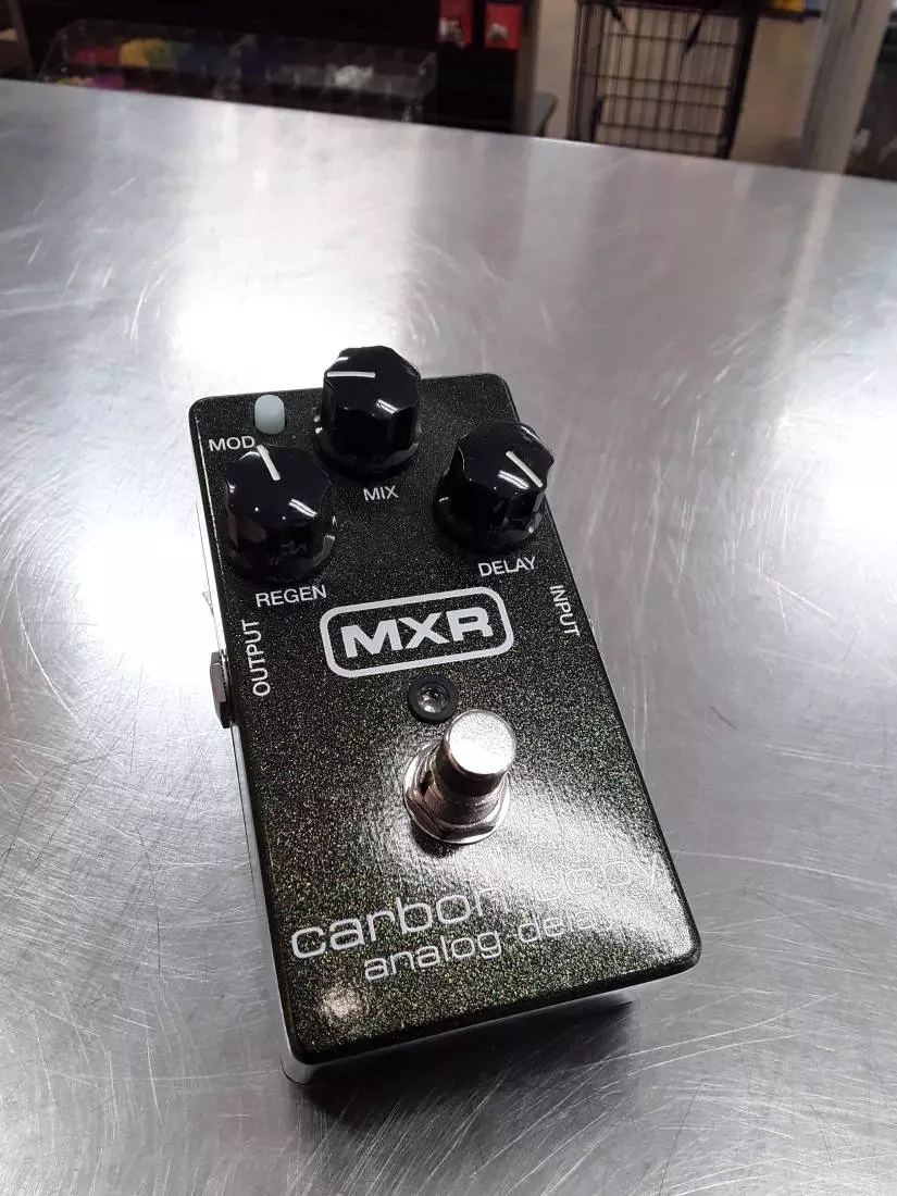 The MXR Carbon Copy Analog Delay Pedal features a completely analog audio path for the ultimate in rich, warm delay-made possible only by old-school bucket brigade technology. This design boasts an amazing 600ms of delay time with optional modulation via a top-mounted switch and a simple, three-knob layout that controls Delay time, Mix (dry/wet blend), and Regen (delay repeats)-all in a pedal no bigger than a Phase 90. In addition, the M169 pedal has two internal trim pots that offer user-adjustable width and rate control of the modulation for even more tonal options. The Carbon Copy effect pedal will take you from crisp "bathroom" slap echoes to epic, Gilmour-esque delays with a twist of a knob. True hard-wire bypass, single 9-volt operation, and stage-ready blue LEDs round out the package.
