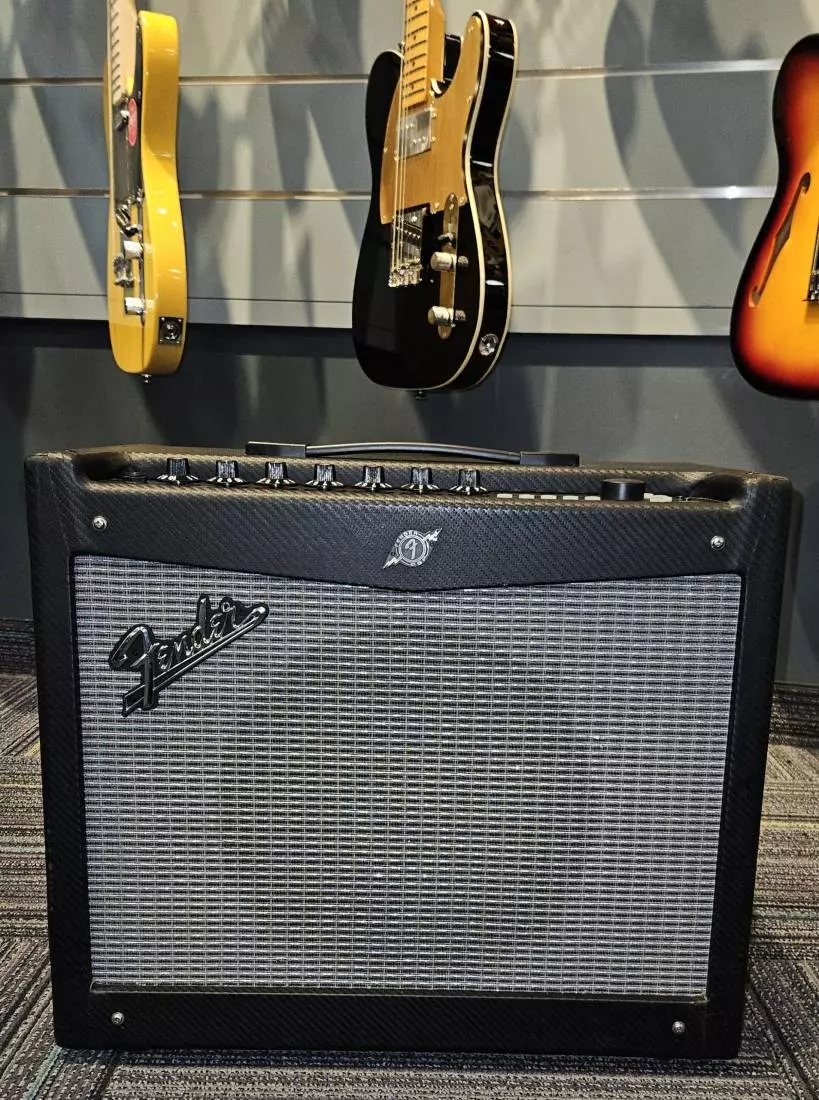 Seventeen high-quality Fender and other amp models including five new ones, such as 57 Twin and 60s Thrift; a full palette of effects including reverb, delay/echo, tremolo, phaser, with additional new effects including Big Fuzz, Green Screamer and intelligent pitch shifting (with even more available through Fender FUSE); 100 onboard factory and user presets; two stereo XLR outputs, headphone output and auxiliary input; new low-noise power amp platform; chromatic tuner; expression pedal capabilities (p/n 2301050000); Blackface treatment and top-load front control panel; USB connectivity for high-quality, low-latency audio output and interface with free Fender FUSE PC application; Fender FUSE application for on-screen parameter control, deep editing, unlimited preset storage, online patch swapping and easy firmware upgrades (Fender FUSE community includes chat forums, preset trading, and additional content from Fender and artists); Ableton Live Lite 8 Fender edition studio-quality recording software compatible with Mustang USB recording output; AmpliTube Fender LE edition with free Fender FUSE editor/librarian software for Mac and PC (makes Mustang ideal for guitarists new to digital recording).