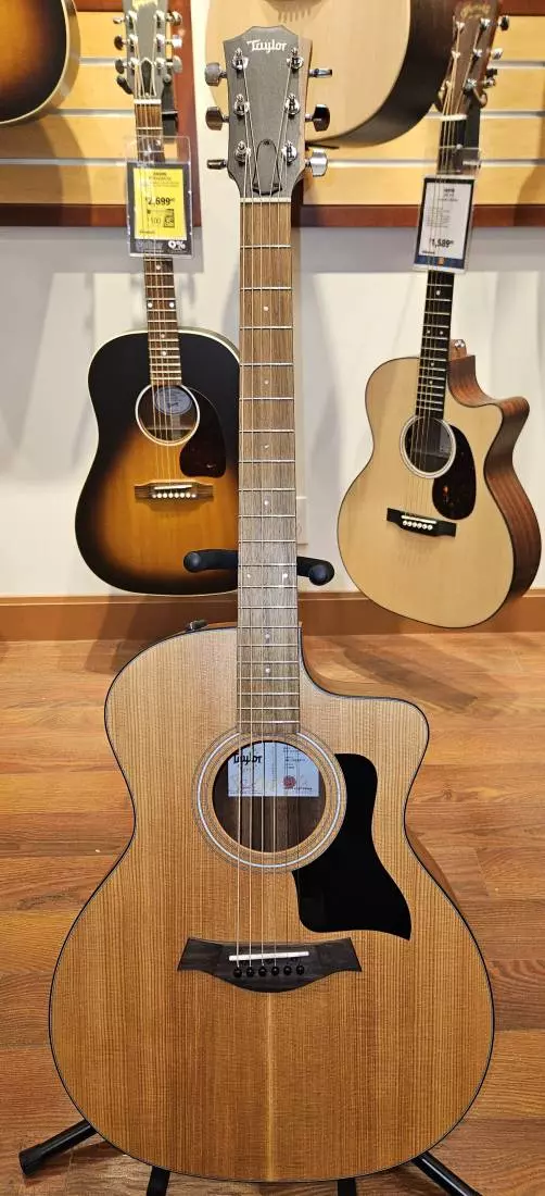 With exceptional playability, rich tone and all the features a player needs for everyday musical applications, the Taylor 114ce acoustic-electric guitar offers a great value for players of all skill levels. A top of solid torrefied spruce generates a clear, balanced midrange voice with plenty of projection for all purposes, whether you're practicing at home or playing shows with other musicians. Taylor's special roasting recipe adds a touch of warmth and sweetness that you'd expect from a more mature, played-in guitar, while a tone-boosting interior bracing design dials up the response with louder volume, longer sustain and greater low-end presence. And with the slender Taylor neck profile, you're ensured easy, relaxed fretting no matter your playing style. It all adds up to a versatile experience with wide-ranging musical utility, whether it's your first guitar or the latest addition to your collection.