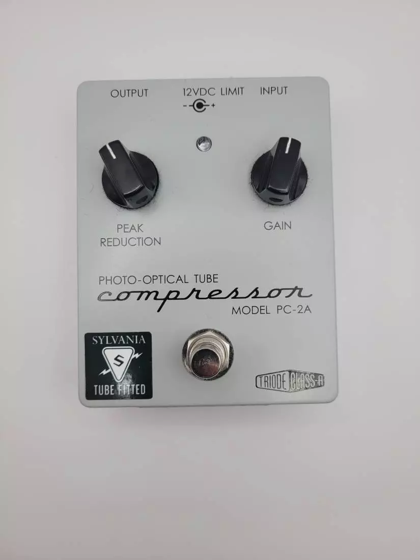 Looking for a top-notch compressor pedal? One that will really make your guitar, or bass, shine? Then look no further. The PC-2A is essentially a vintage vacuum tube studio compressor in a stompbox: it’s circuitry is based on the legendary LA-2A! The signal path is 100% analogue and built on polyester coupling capacitors, instrumentation-grade resistors, a photocell and Sylvania 6111 pencil tube.
