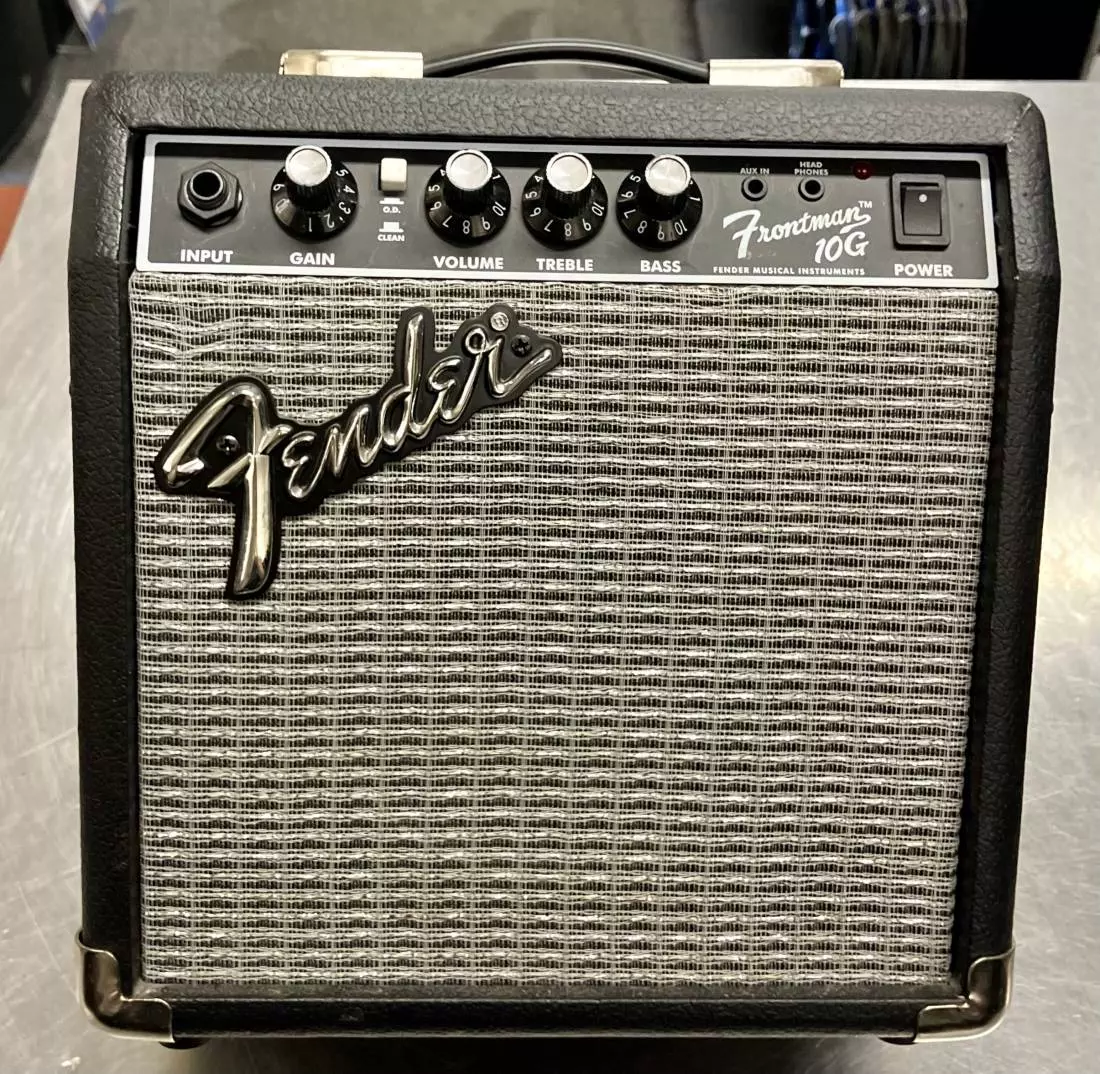 The Frontman 10G is a small, easy-to-use practice amp. The 1/8" auxiliary input jack allows for easy jam alongs with a cd player or other devices with a 1/8" out. This amp packs the famous Fender tone in a small, easy to transport package. Great for beginning and veteran guitarists alike who are looking for a convenient, great sounding amp.