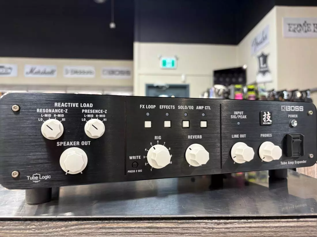 Bringing together a diverse range of professional tone tools for the very first time, the Waza Tube Amp Expander elevates the tube amp experience to a new level of versatility for stage performing and studio recording. This amazing device does it all - it's a variable reactive load box, active analog power stage, mic'd cab simulator, IR loader, and recording interface, all in one integrated unit that's road-ready and easy to use. With extensive connectivity, built-in BOSS effects, 10 fully customizable rig setups, and deep real-time control, you have unparalleled creative command for any scenario. Packed to the max with breakthrough BOSS innovations, the Waza Tube Amp Expander is an essential companion for every tube amp player.
