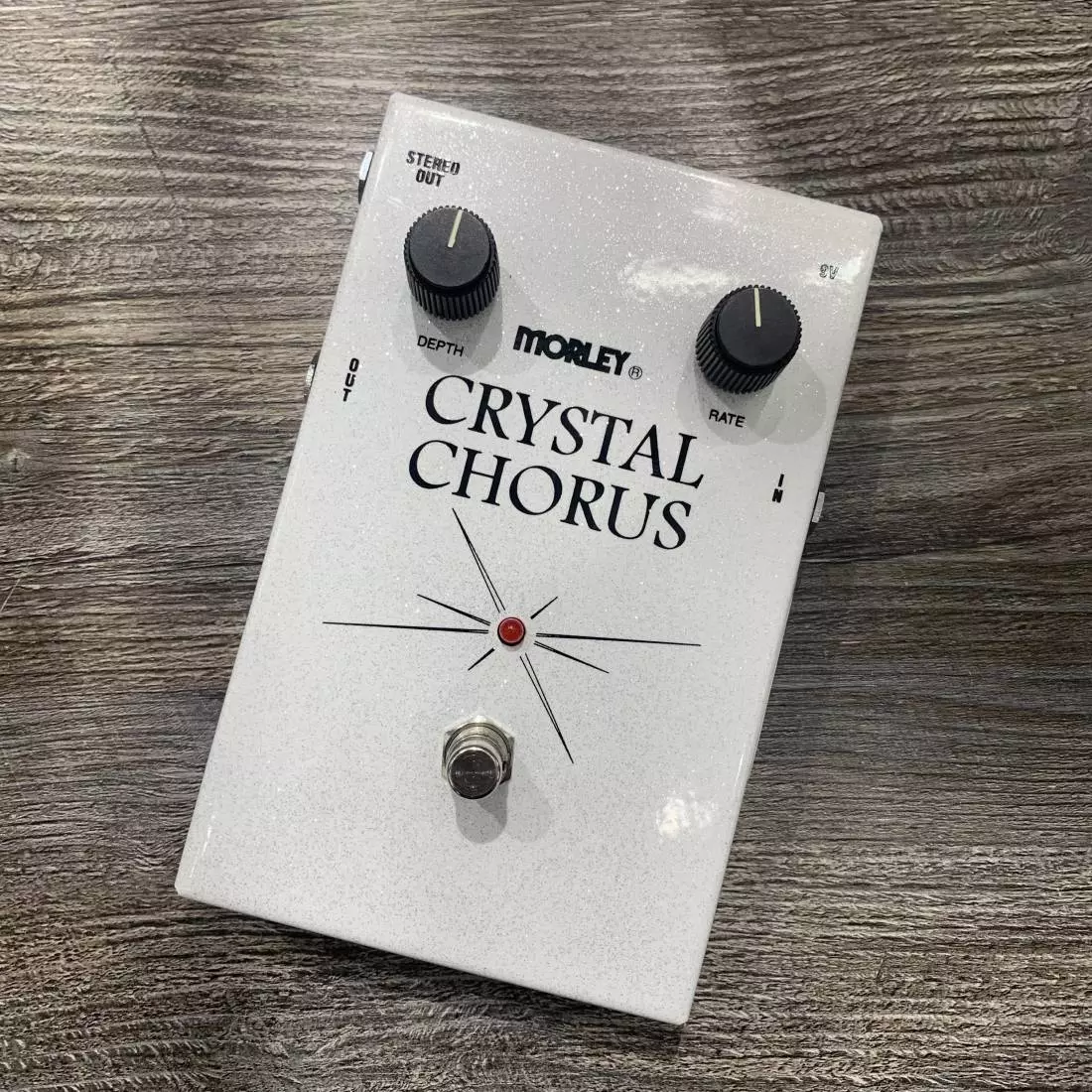 The Morley CRYSTAL CHORUS Effect Pedal delivers rich, shimmering chorus tones with simple controls for Depth and Rate, allowing you to shape your sound with ease. This analog chorus pedal features a sturdy metal construction and true bypass switching for a pure signal when disengaged. Designed for both guitar and bass, it enhances your tone with warm, lush modulation perfect for adding depth to solos or rhythm playing. This used unit is in fair condition, showing noticeable cosmetic wear but functioning as intended. The pedal operates on a 9V battery or optional power adapter (not included). Whether you're looking for subtle movement or dramatic swirling textures, the Morley CRYSTAL CHORUS offers classic chorus effects in a reliable and straightforward design. Ideal for musicians seeking an affordable modulation pedal with vintage character, this unit brings expressive sound-shaping potential to any pedalboard.