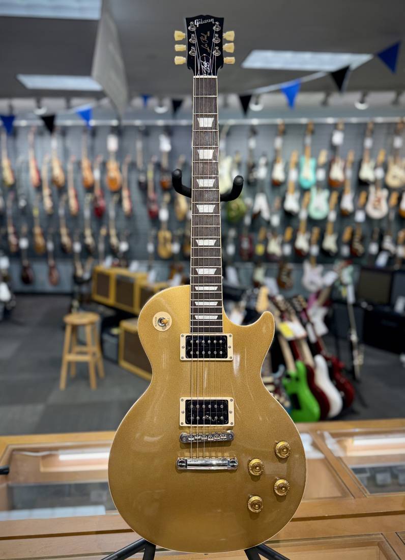 Gibson and Slash are proud to present the Slash Collection. It represents influential Gibson guitars Slash has used during his career, inspiring multiple generations of players around the world. The Slash Collection of Gibson guitars can be seen live on stage with Slash today. The Slash "Victoria" Les Paul™ Standard Goldtop features a maple top, a solid mahogany body with a dark finish on the back, and Slash's personal touches, including a C-shape neck profile, Gibson Custom BurstBucker™ Alnico 2 pickups, colour-coordinated hardware appointments, hand-wired electronics with Orange Drop® capacitors and a vintage-style hardshell case. Exclusive to the Slash Collection is Slash's Skully signature drawing on the back of the headstock, Slash's signature on the truss rod cover, a blank truss rod cover in the case, Slash-approved Ernie Ball® strings, and four Slash Jim Dunlop Tortex® picks.