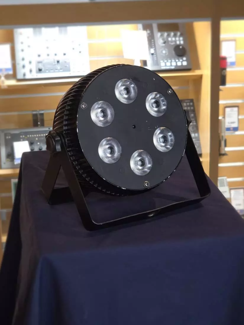This LED Flat Par Can uses 6 x 10W LEDs. The LEDs are used for their long life, low power consumption, high brightness and excellent color.