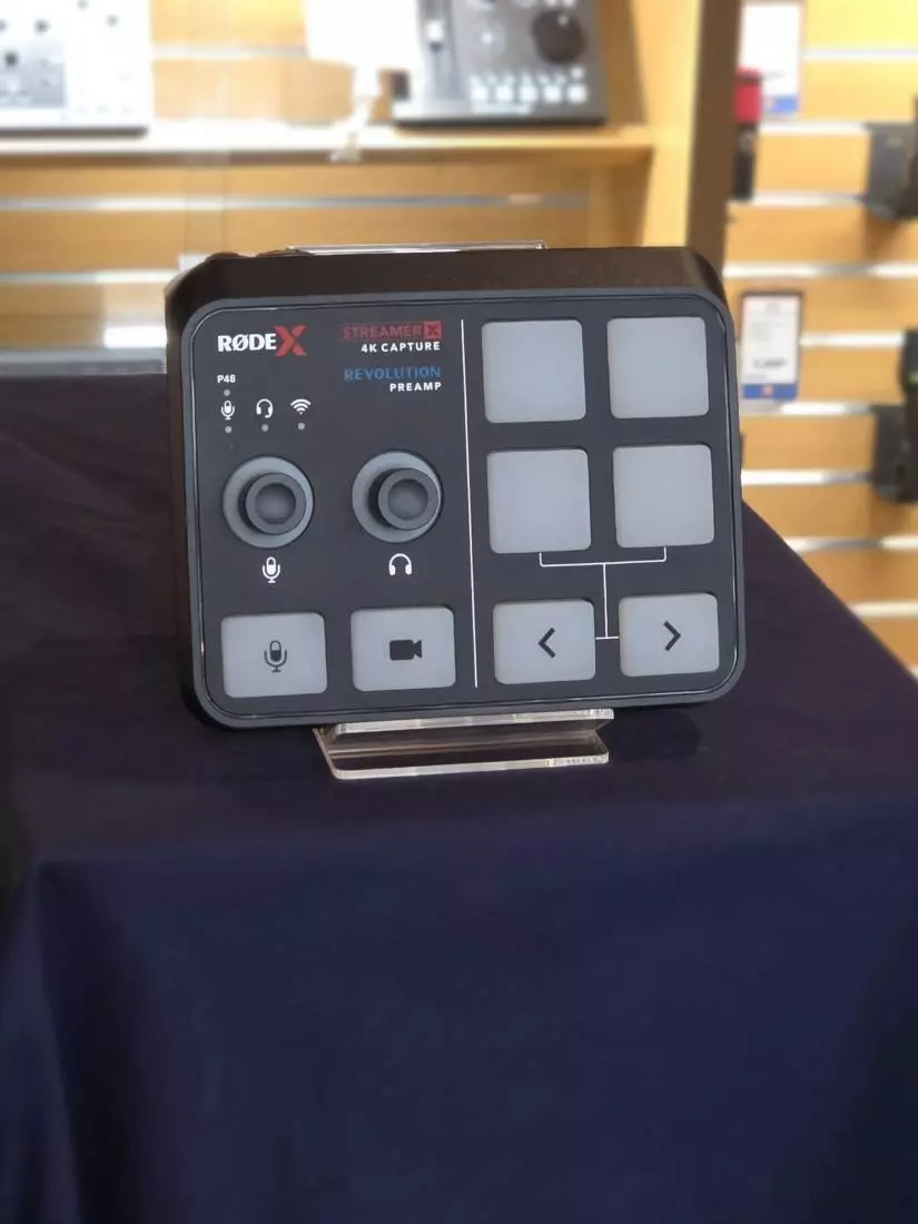 The Streamer X is a professional video capture card, audio interface and control surface integrated in one compact device, making creating that looks and sounds incredible easy. It features studio-grade audio inputs for XLR microphones and instruments, headsets and RODE Series IV wireless microphones, with an ultra-low-noise, high-gain Revolution Preamp™ and powerful APHEX® audio processing delivering pristine sound quality.