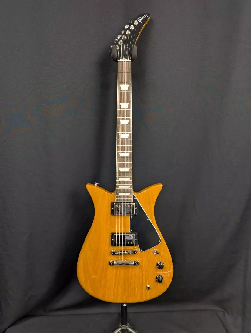 Designed by then Gibson president Theodore "Ted" McCarty and only previously available as a limited edition Custom Shop model, the Gibson Theodore Standard is based on drawings and notes created by Ted McCarty in 1957. Its features include a mahogany body, scimitar headstock with Grover® Mini Rotomatic® tuners, and double Florentine cutaways that provide unimpeded access to all 22 frets on the rosewood-capped, SlimTaper™ mahogany neck.