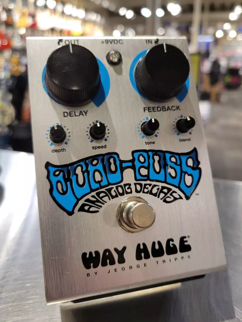 The Way Huge Echo-Puss was designed by delay expert Jeorge Tripps for players who want an organic analog delay pedal that allows them to fine-tune their delay sound with a simple user interface. It serves up 600ms of delay with a pair of gravelly-voiced bucket-brigade chips. Additionally, a fully tweakable LFO modulation circuit allows you to add a liquid texture to the sound of the repeats.