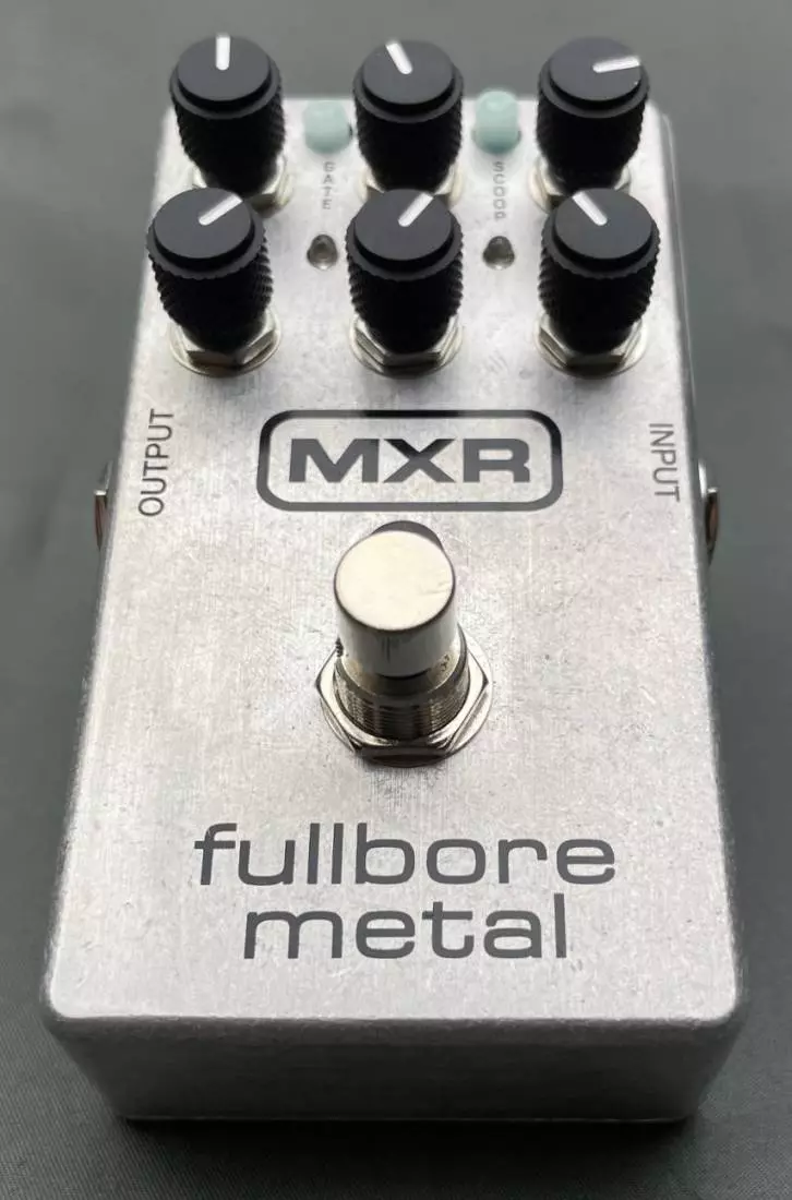 Ultimate riff power is yours with the FullBore Metal Distortion pedal from MXR. This compact but powerful device is all you need to unleash the most devastating contemporary metal guitar tones ever heard. The FullBore pedal turbo-charges your guitar signal with lethal amounts of ultra high gain. This is combined with a built-in Noise Gate to knock out the noise associated with extreme gain levels while also adding definition and tightness to syncopated metal riffs.
