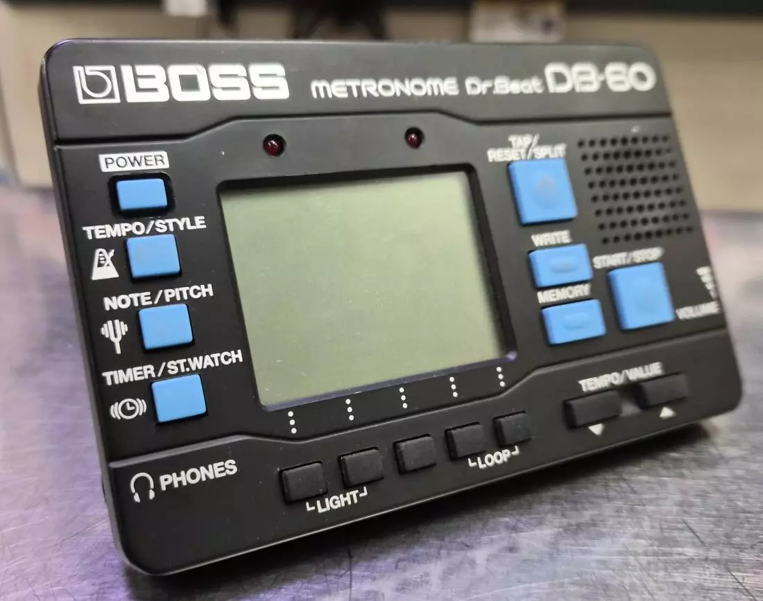 The new DB-60 is a handy timekeeper that can lay down a click in style. Along with the standard functions of a metronome, the DB-60 provides a menu of rhythmic patterns, a note-mixing feature to create rhythms that match the feel and style of your music, and the ability to handle time signatures of up to 17 beats per measure.