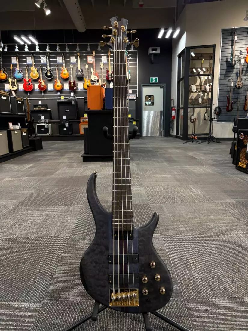 The neck has a wenge fretboard and 24 jumbo frets, a bone nut, the easy-playing Tobias Asym™ profile, and is equipped with Gotoh® tuners. A Babicz® bridge ensures exceptional action and intonation adjustability. Two active Bartolini® humbucking pickups, an 18V preamp, and Volume, Bass, Mid, Treble, and Blend controls, along with a Mid Frequency switch, provide all the control you need to dial up your ideal bass tone. A Tobias premium gig bag is also included.