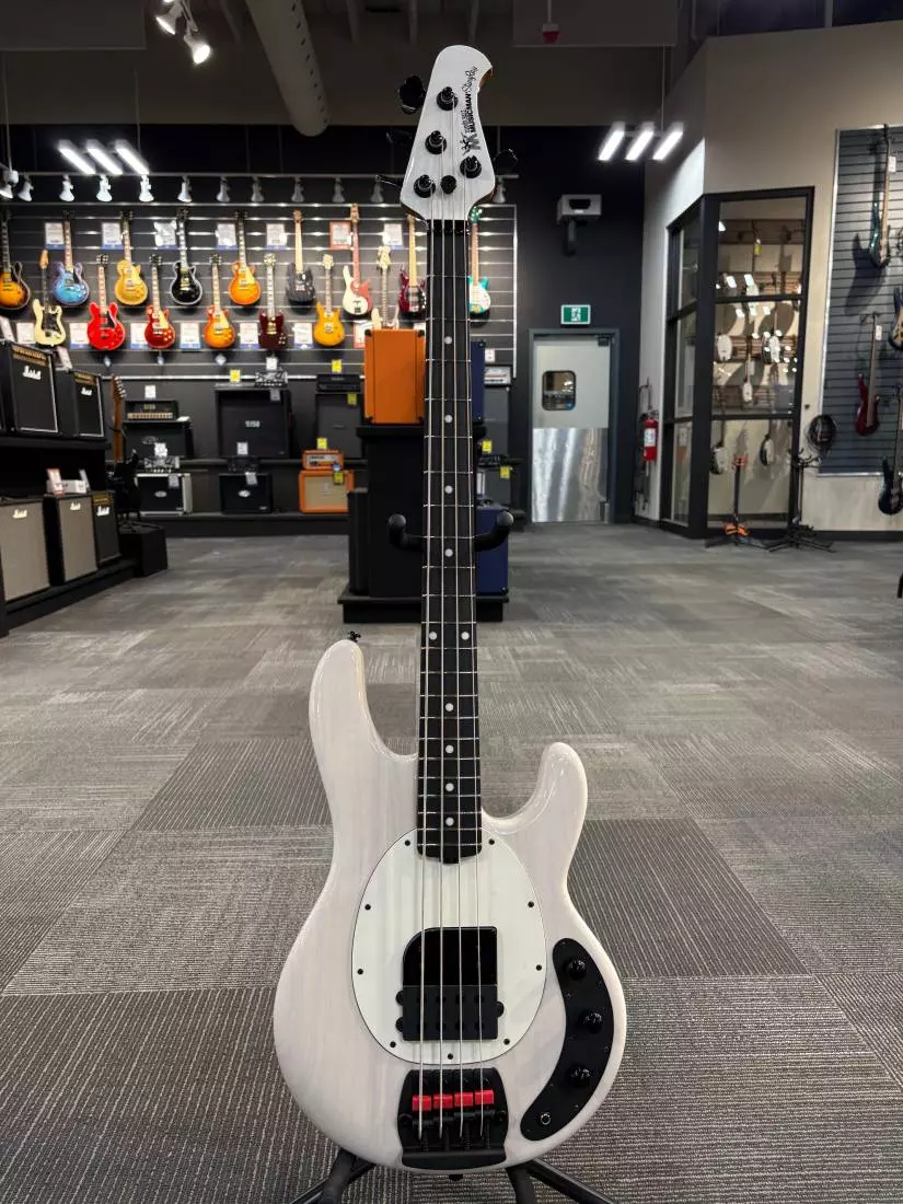 This Tim Commerford Artist Series StingRay Bass was developed in collaboration with legendary bassist Tim Commerford of Rage Against the Machine, Audioslave, and 7D7D, celebrates his long-standing connection with Ernie Ball Music Man. Each featuring a numbered custom neck plate, this bass combines an ash body, roasted maple neck, and ebony fretboard for rich, balanced tone. Equipped with a neodymium Music Man humbucker, 18-volt preamp, and 3-band EQ, it offers impressive tonal versatility, while the string-through-body bridge with a mute kit enhances sustain and control. Black hardware and a custom, height-adjustable "finger ramp" thumb rest inspired by Commerford's playing style - add functionality and comfort.