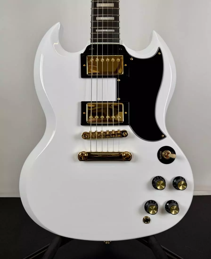The Epiphone SG Custom is a refined and elegant model in formal attire that is well-suited for any occasion. Its stunning looks will turn heads, and its rich sound will impress players and fans alike. It comes complete with a premium gig bag to help keep it safe whether you're travelling to your next open mic night jam session, wedding reception, or club gig.