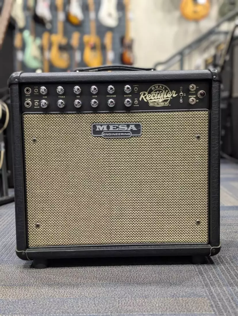 Introducing the Recto-Verb Twenty-Five 1 x 12 Combo, the Reverb-endowed, fraternal-twin of Mesa's little Mini Rectifier lunchbox thats been taking names all over the globe. This even mightier package is slightly larger - long-spring Reverb tank and boast all the same great performance that the Mini Rec is famous for and more. Plus, the classic vinyl-covered birch cabinet provide a wide array of custom finish options to fully personalize them.