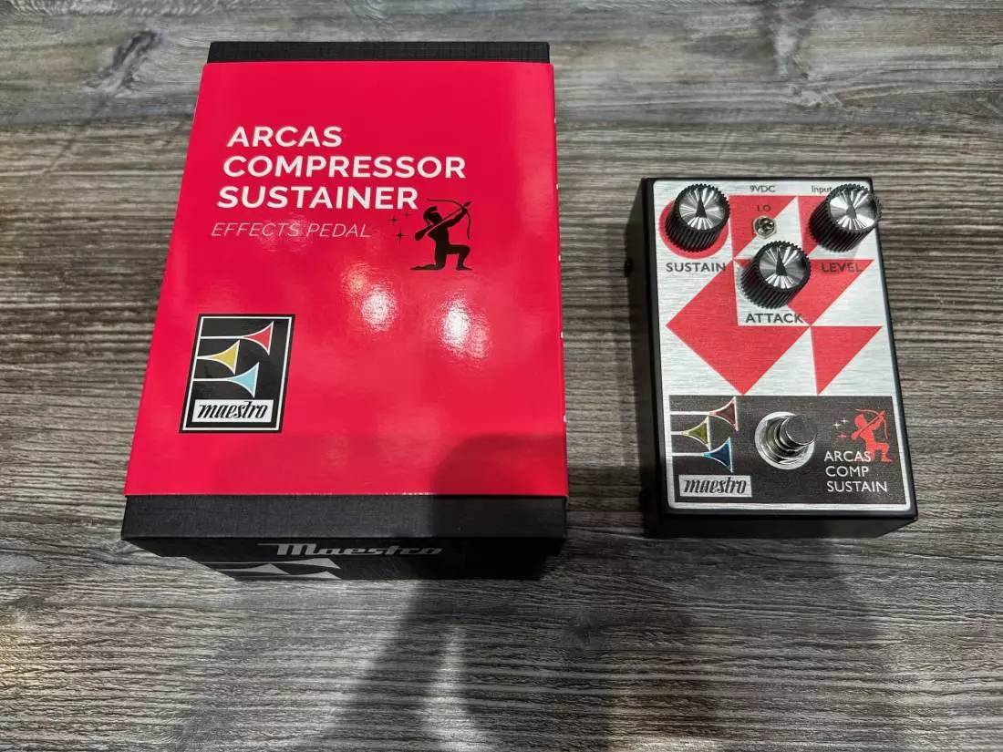 The Maestro Arcas Compressor Sustainer pedal provides excellent versatility. It offers both transparent, light compression as well as heavy, tight compression. It delivers enough sustain and level compensation to become a go-to workhorse for any situation. This all-analog pedal boasts a two-position Mode toggle switch for increased sonic versatility.