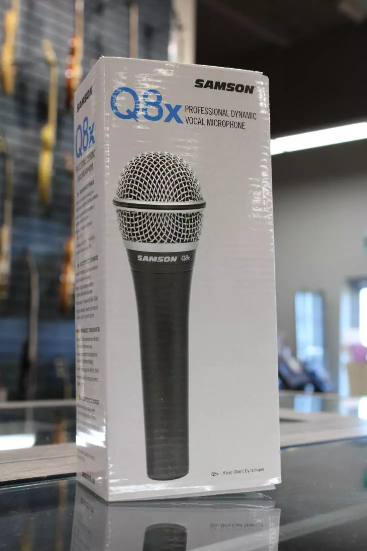 Samson's flagship Q8x Professional Dynamic Vocal Microphone provides the ultimate in sound reproduction for live and studio vocal and instrument performances. This high output mic faithfully captures a wide dynamic range with exceptional mid-range clarity. Its supercardioid pickup pattern provides maximum gain before feedback, while an updated body design and pneumatic capsule shockmount minimize handling noise.