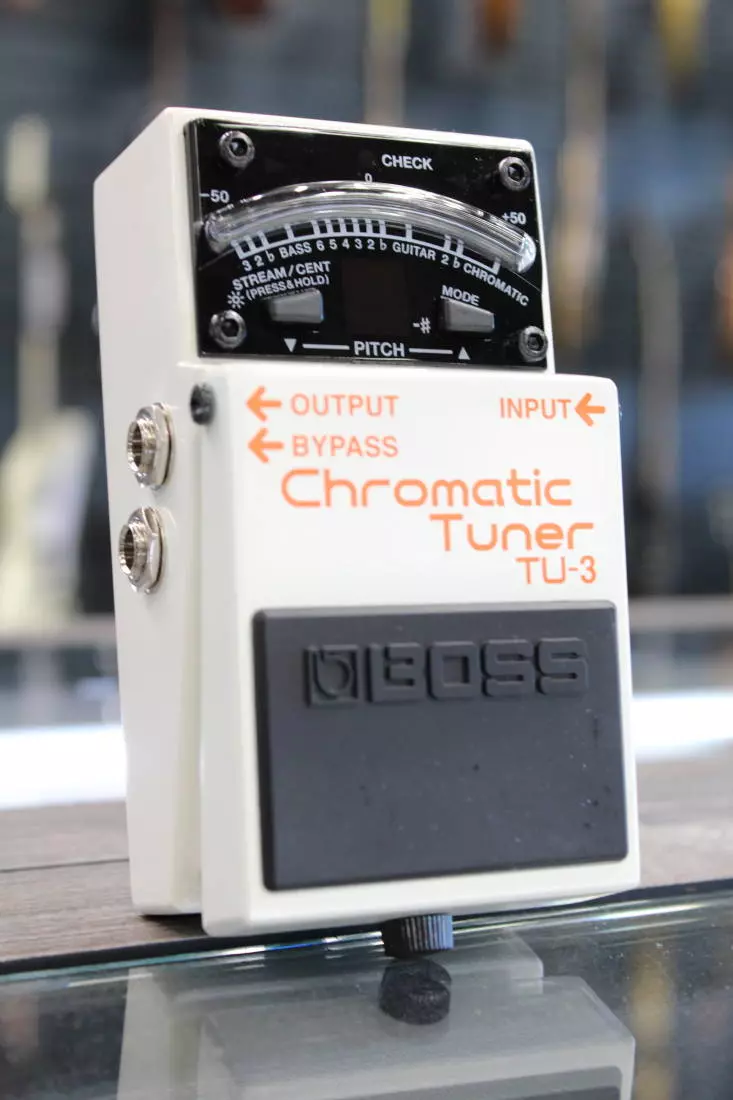 The worlds top-selling stage tuner, the BOSS TU-2, evolves and improves with the debut of the new TU-3. Housed in a tank-tough BOSS stompbox body, the TU-3 features a smooth 21-segment LED meter with a High-Brightness mode that cuts through the harshest outdoor glare. Choose between Chromatic or Guitar/Bass tuning modes, and enjoy visual pinpoint tuning verification with the Accu-Pitch Sign function. The TU-3 incorporates a convenient Note Name Indicator that can display notes of 7-string guitars and 6-string basses, while the Flat-Tuning mode can support up to six half-steps. Its the new-standard tuner that no guitarist or bass player should be without!