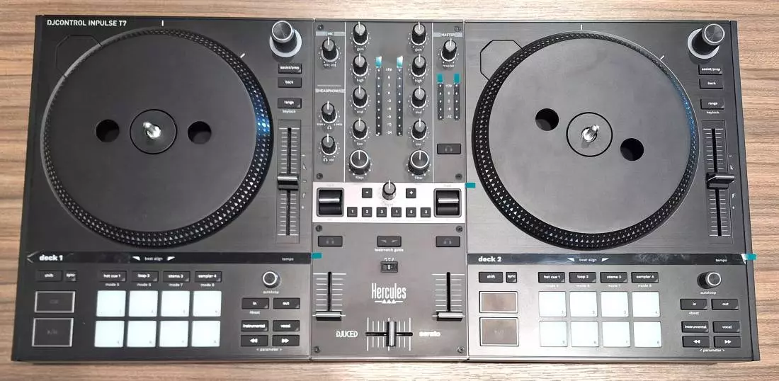 Today's modern DJs have taken to spinning on digital controllers with motorized jog wheels, vinyl discs, and slipmats that pay homage to the first DJs who paved the way for their modern success. Hercules has tapped into the emotional connection to historical spinning with their own modern take on a DJ controller that emphasizes the tactile feeling of vinyl turntables. DJs who want to take their first steps towards spinning on vinyl can now choose the DJControl Inpulse T7 motorized DJ controller.