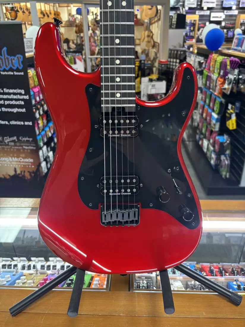 The So-Cal alder body is coupled with a pickguard, bolt-on maple neck featuring a pair of graphite-reinforcement rods to resist bending and warping under environmental stresses. The speed neck profile is designed for lightning fast playing and completely unhindered position shifts, while the comfortably rolled fingerboard edges provide the broken-in feel of an instrument with plenty of playing miles on it, and plenty more to go. Perfect for faster tempos, the 12"-16" compound radius fingerboard hosts 22 jumbo frets and dot inlays. For regularly touring musicians, a heel-mount truss rod adjustment wheel is a must, allowing for