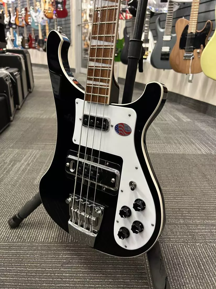 The Classic Rickenbacker bass - famous for its ringing sustain, treble punch and solid underlying bass. A subtle strip of binding graces the elegantly curved body and the Rosewood fingerboard. Deluxe triangular inlays and stereo capability are standard features.