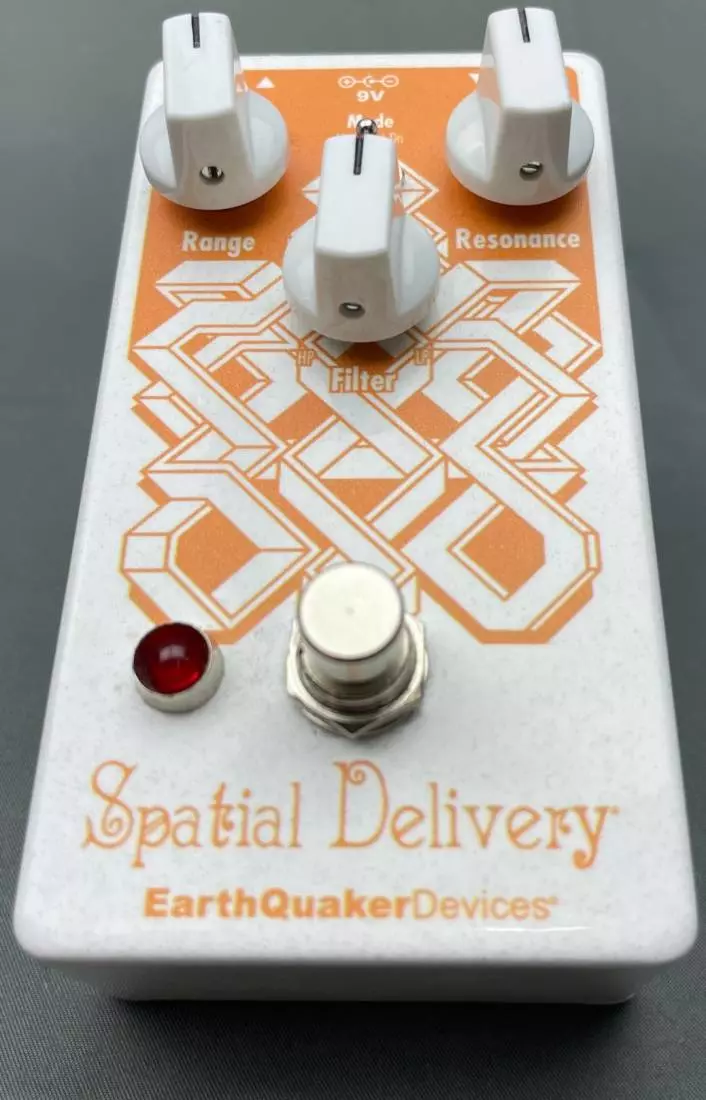 In Up and Down modes, you'll get super precise touch-sensitive tone sweeps with a variety of filter types. In both modes, the Spatial Delivery's controls for "Range," "Resonance," and "Filter" interact to deliver anything from subtle phaser-like modulation, to whistly resonant peaks. The "Range" control adjusts the sensitivity of the envelope, dialing in the overall touch-responsiveness to pick attack. "Resonance" adjusts the feedback of the filter. Counter-clockwise settings yield a rounded, subdued tone, while clockwise settings increase the body and ring of the filter voice, resulting in a sharp, peaky tone. The "Filter" control crossfades between Low-Pass, Band-Pass, and High-Pass filters, so only the good bits of your signal get freaky funkified.