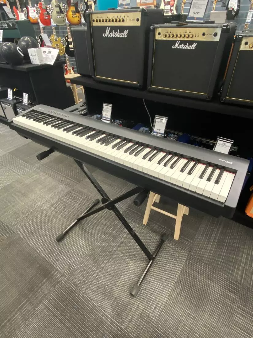 If you've dreamed of having a piano in your home but don't have the space or budget for a full-sized instrument, your wait is over. The affordable FP-30 offers Roland's acclaimed sound, feel, and modern features in a top-quality 88-note instrument that fits any space with ease. Light and portable, it's a great fit for performing players and music classrooms as well. Adding in numerous sounds beyond the piano, built-in practice and recording functions, and Bluetooth wireless support for working with popular music apps, the FP-30 delivers a premium musical experience previously unattainable in such a streamlined package.