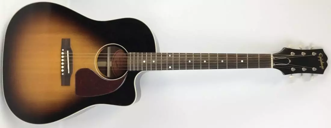 The legendary Gibson J-45 has been a favorite of musicians ever since it was first introduced in 1942. Now Epiphone has released a new Inspired by Gibson J-45 Cutaway that gives players improved access to the upper frets while retaining all of the features that make the J-45 special to begin with, including the Sloped Shoulder body with a solid Sitka spruce top and solid mahogany back and sides, beautiful Aged Vintage Sunburst finish, a comfortable rounded C neck profile and a Fishman Sonicore under-saddle pickup with the Fishman Presys II preamp featuring volume and tone controls.