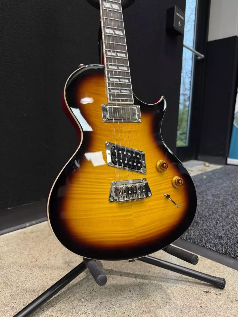 The Epiphone Nancy Wilson Fanatic comes equipped with ProBucker™ humbuckers, a 5-way pickup selector switch for a wide variety of tonal options, master volume and tone controls, a fastplaying rounded C prole mahogany neck with an ebony fretboard, and features an attractive Fireburst Gloss finish. Includes hardshell case.