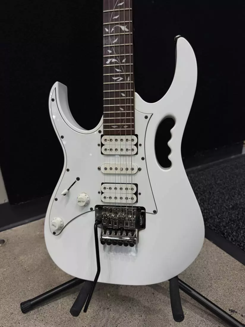 One of JEM's most recognizable features is Steve Vai's signature monkey grip. The JEM Junior also features a mahogany body and Jatoba Fretboard w/Tree-of-life inlay. Jatoba, with its reddish brown colour, produces a rich mid range with a crisp high end.