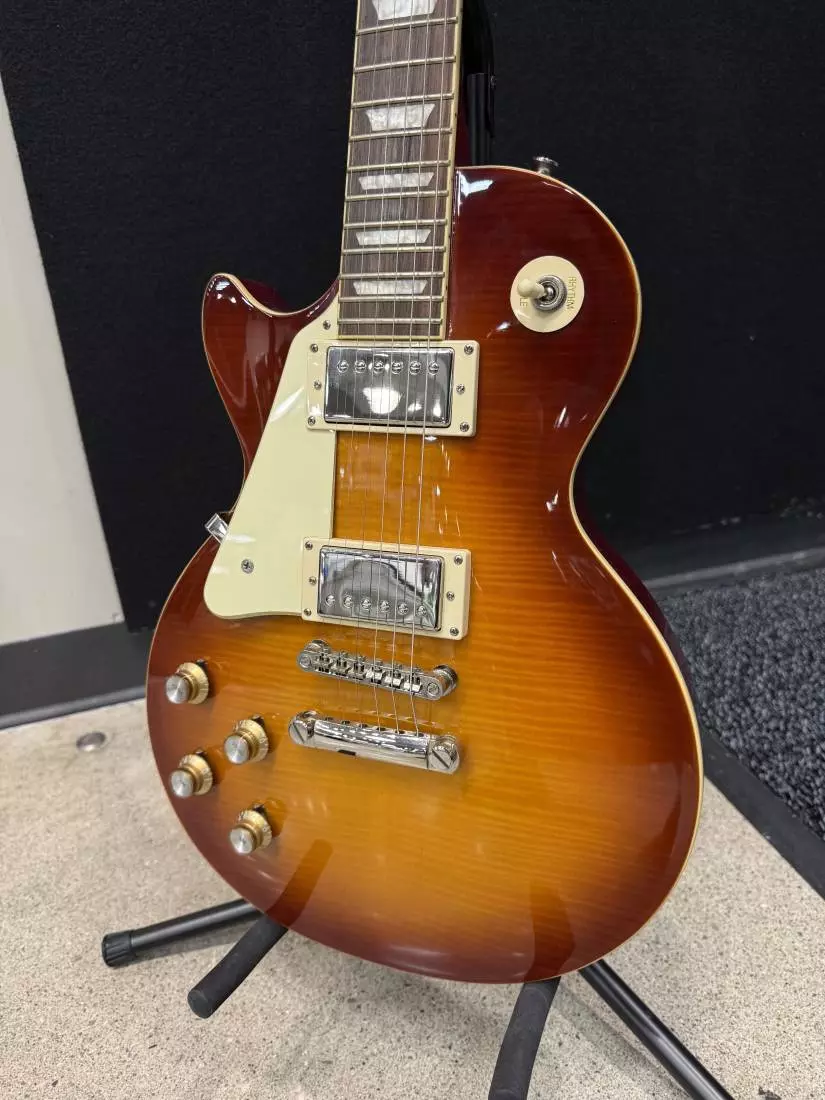 The Les Paul Standard 60s models from Epiphone's new Inspired by Gibson Collection recreate the sound of 1960s era Les Pauls. Featuring a classic Mahogany body with a Maple cap, Grover® tuners, and powered by ProBucker™ humbuckers with CTS electronics.