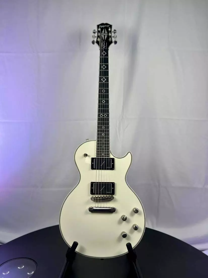 Made to the Alice in Chains guitarist's specifications, the new Jerry Cantrell Les Paul Custom Prophecy represents the perfect blend of modern and traditional features. It is equipped with a double-bound mahogany body with a maple cap and Ultra Modern weight relief for tone and comfort, a smooth-playing ebony fretboard with 24 jumbo frets, Grover locking Rotomatic tuners and a Graph Tech nut for rock-solid tuning stability, and custom-voiced Fishman Fluence pickups that deliver three distinct tones - a warm "Patent Applied For" vintage humbucker, hot modern humbucker, and a shimmering single-coil, all accessed by push/pull volume and tone pots. Jerry's personal touches abound, including a custom Cantrell neck profile, Circle in Diamond Custom fretboard inlays, his name on the truss rod cover, brushed nickel hardware, and a JJ circle logo on the rear of the headstock. A custom hardshell case is included.
